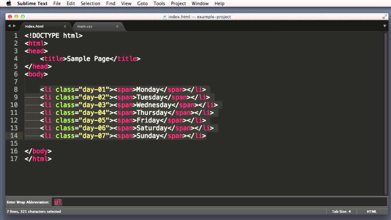here you go, a nice example of functionality using Emmet In SublimeText 3 (no bias…